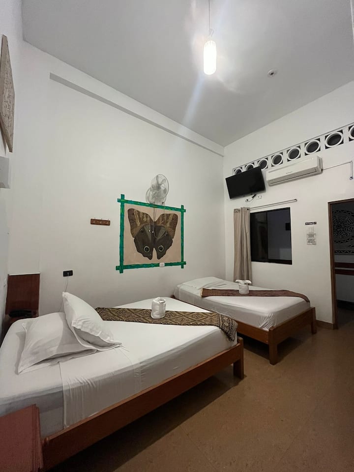 تحتوي الغرف على مكيف هواء، وهي مثالية لمناخنا الاستوائي؛ ومياه ساخنة وخدمة واي فاي وتلفزيون كابل.