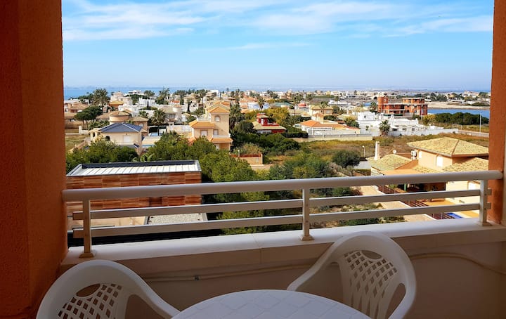 شقة لا مانغا - على الشاطئ + حمام سباحة + مكيف هواء