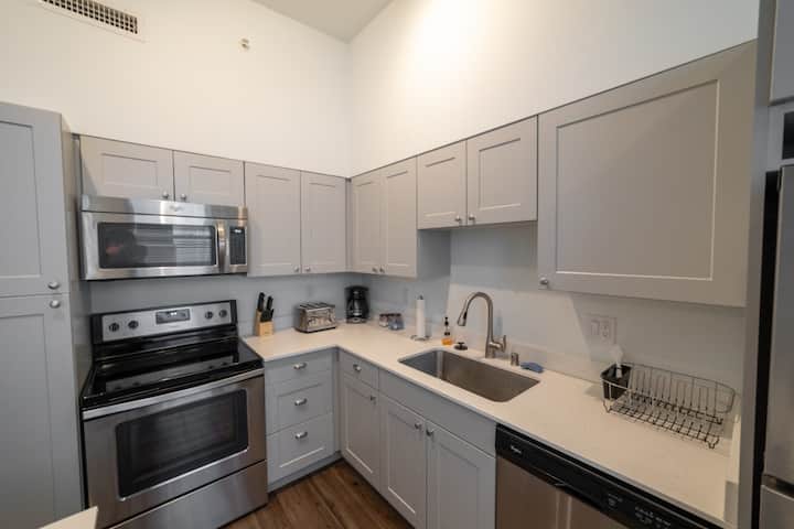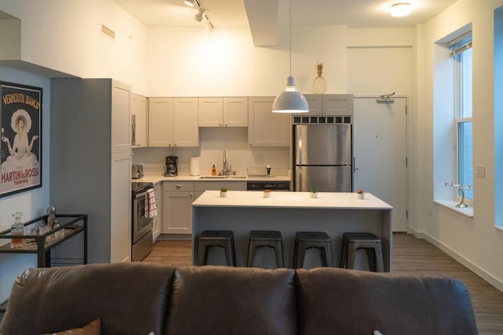 شقة بغرفتي نوم مع أسرّة كينج/موقف سيارات مجاني/وسط المدينة
