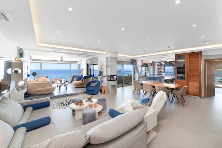 يقع العقار الخاص المغلق على مشي المشاة أمام البحر الأبيض المتوسط الصخري ، مع مناطق استراحة ترفيهية بجوار حمام السباحة ومقدمة الشاطئ. يخلو الساحل الجنوبي الشرقي لكريت من التيارات وغيرها من المخاطر ويوفر ملاذاً آمناً لأولئك الذين يستمتعون بالسباحة في البحر المفتوح.