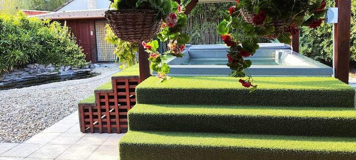 حمام سباحة خارجي خاص - متاح موسمياً ومفتوح لساعات محددة وغطاء حمام السباحة ومُدفّأ