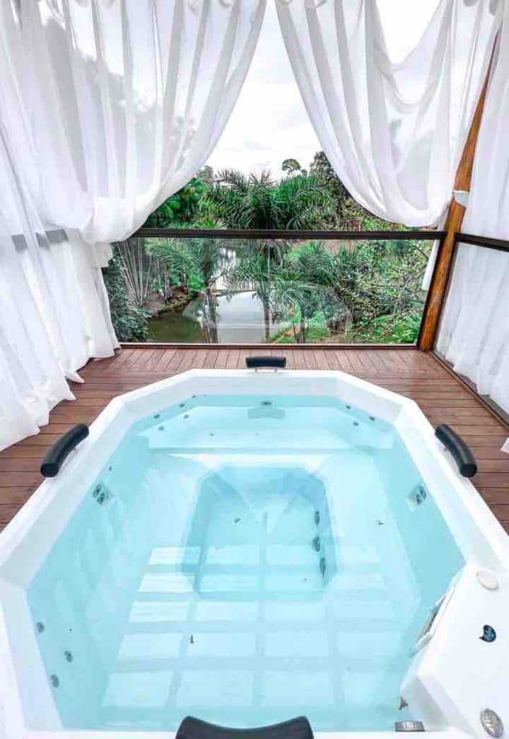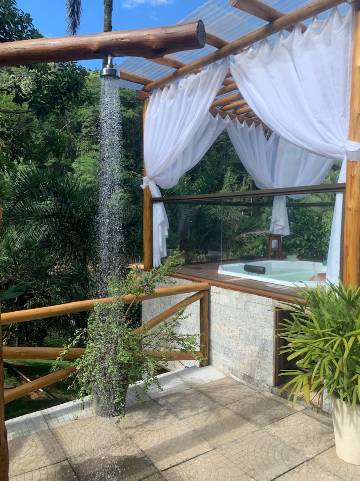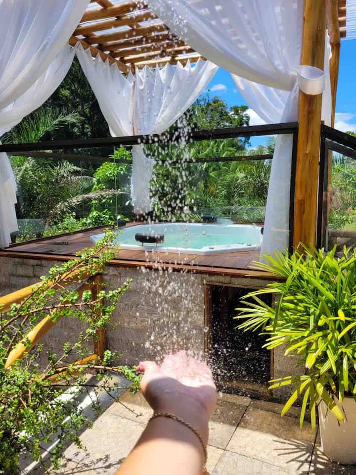 استمتع بالاسترخاء مع دُش خارجي والجاكوزي.