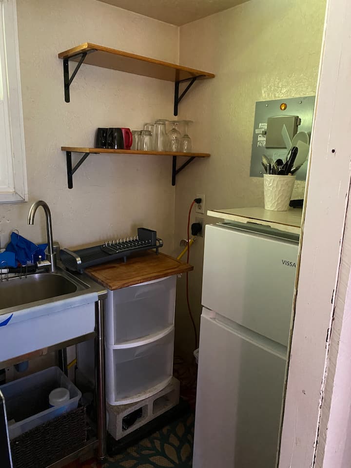 استوديو هادئ مفروش بالكامل مع مطبخ صغير