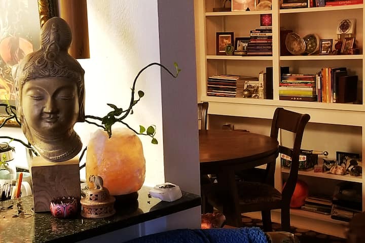 مرحبًا، أنا إسحاق (زميل في السكن) :) - أنا موسيقي سهل الانغماس في فن الشفاء من الصوت باستخدام مجموعة متنوعة من الأوعية والأجراس والجرس. أقدم جلسات شخصية للشفاء الصوتي خارج غرفة المعيشة الخاصة بي.