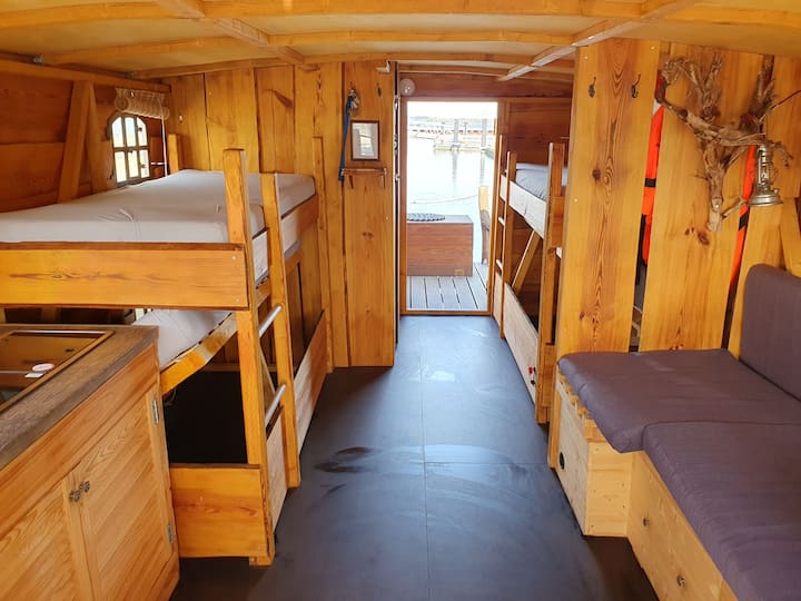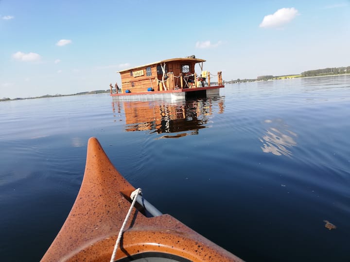 قارب سكني على البحيرة