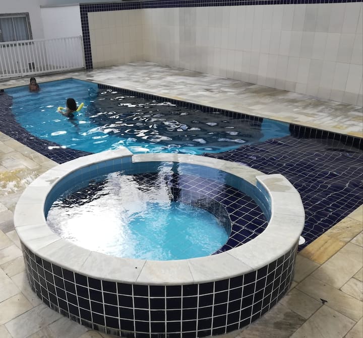 غرفة نوم مشمسة✨ 2 + حمام سباحة شرفة مع شواية
