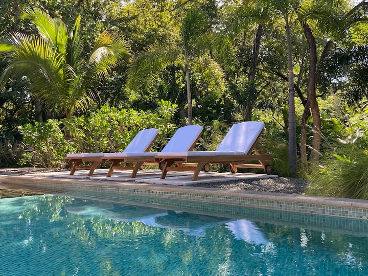 لحجز العقار بأكمله، يرجى إرسال بريد إلكتروني إلينا أو الاتصال بنا. أربع فيلات منفصلة، تتسع لأربعة أشخاص كحد أقصى، حمام خاص في كل فيلا (إجمالي النوم 16)، مطبخ مجتمعي، حمام سباحة، على بعد 3 دقائق من شاطئ بلايا غراندي.