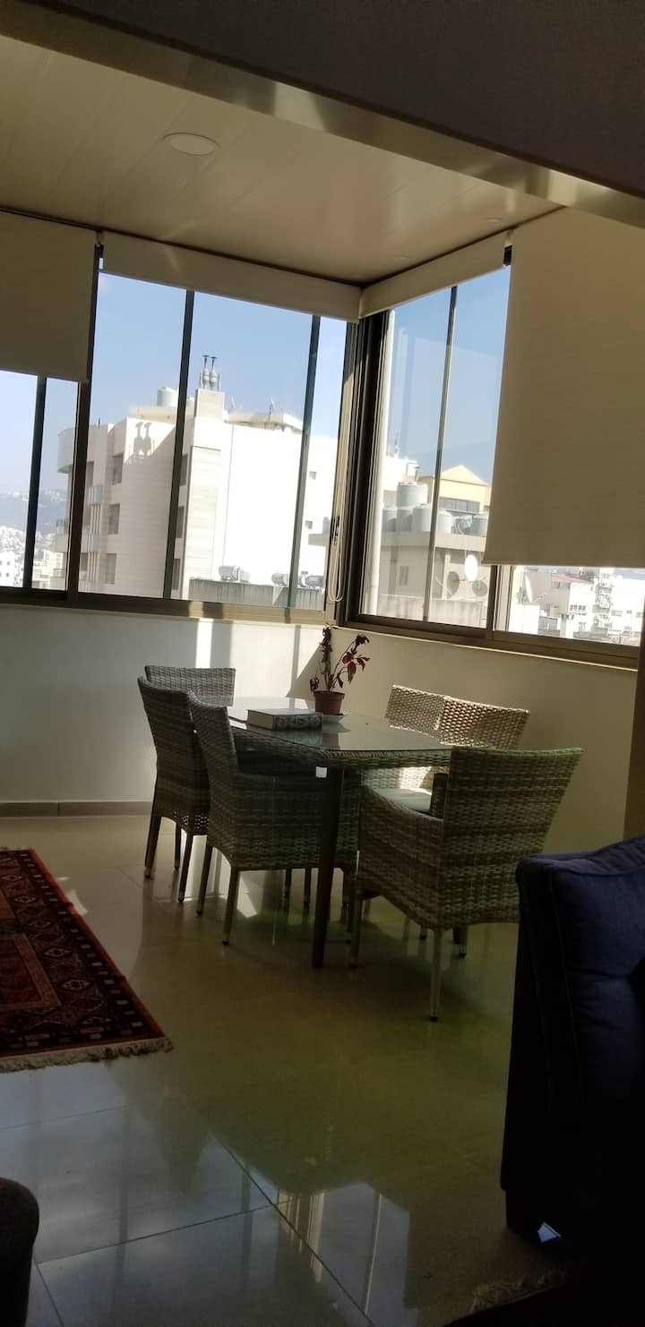 تقع الشقة على بعد 3 دقائق سيرًا على الأقدام من USJ ودقيقتين سيرًا على الأقدام من السفارة الفرنسية. تقع الشقة في الطابق التاسع مع إطلالة رائعة على الجبل. يتم مشاركتها مع طلاب USJ. 4 غرف نوم في المجموع