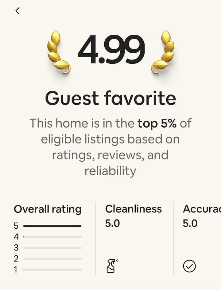 هذا المسكن من أفضل 5% من المساكن المؤهلة، استنادًا إلى التقييمات والمراجعات وبيانات الموثوقية