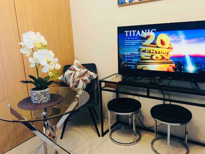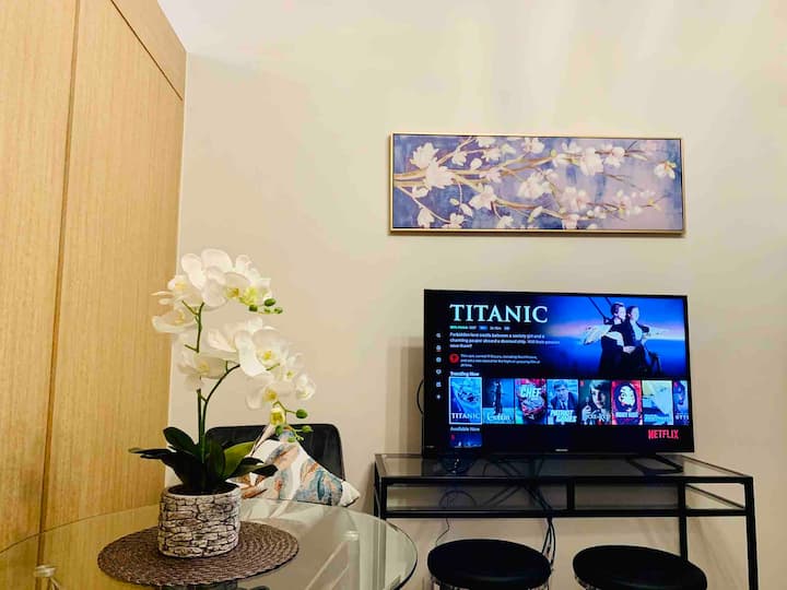 غرفة نوم واحدة واسعة مع شرفة في Grass Res.T4 +Netflix وواي فاي