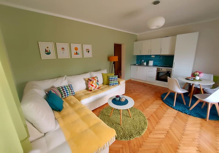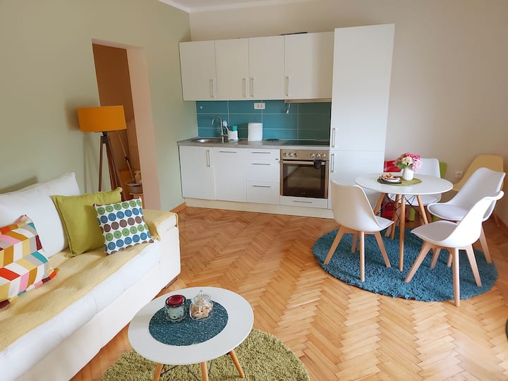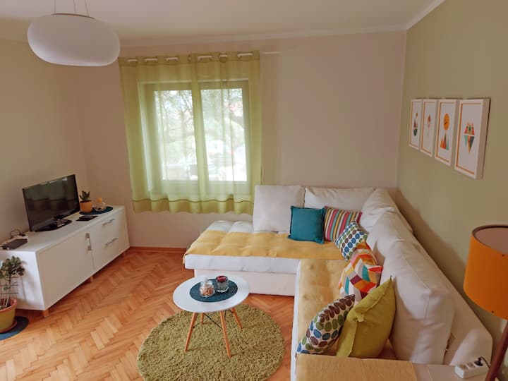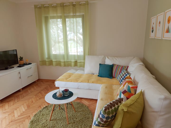 شقة مريحة مع حديقة صغيرة