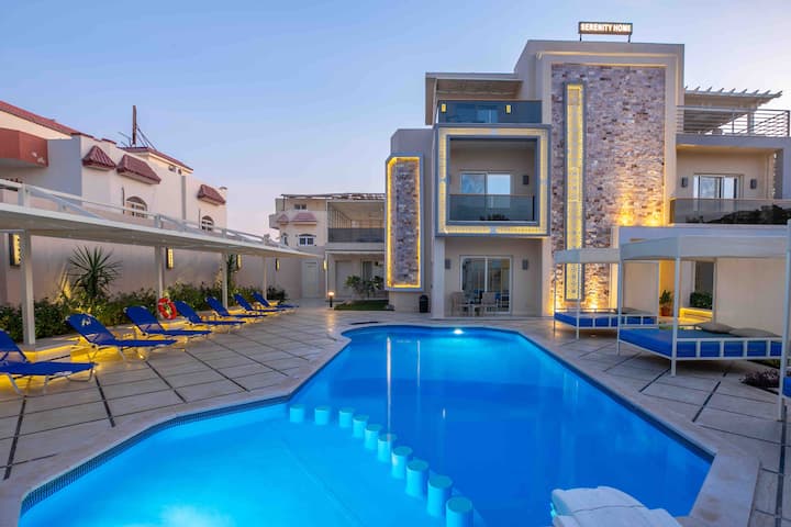 شقة Serenity Home، غرفتي نوم وغرفة معيشة.