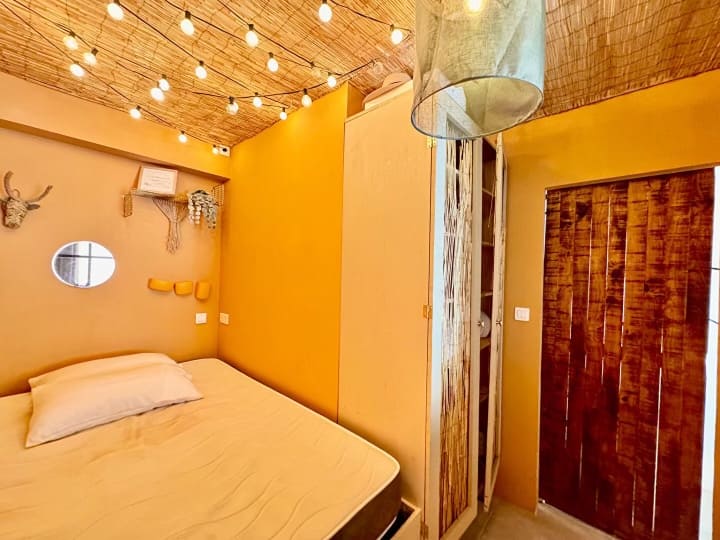 أنا أشرع كمضيف في هذه الشرنقة الصغيرة المريحة جدًا خلف الكثبان الرملية. آمل أن أقابل أشخاصًا جميلين وبالتالي توسيع أفقي.