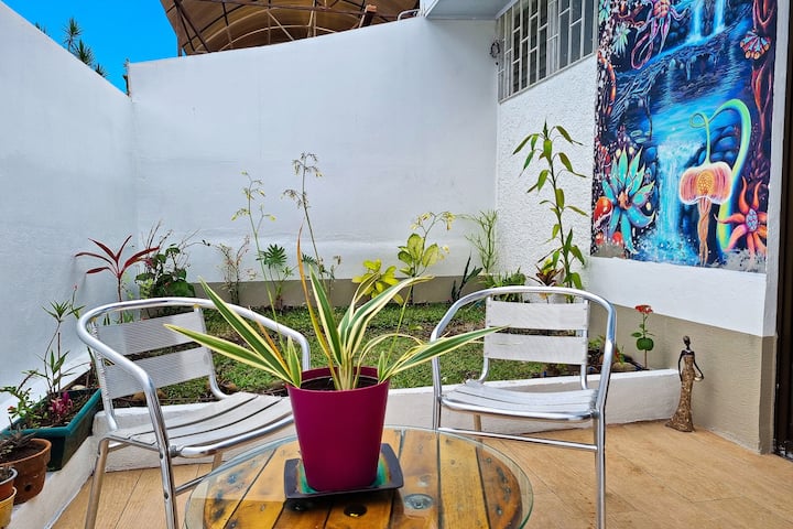 نحن كازا جاردين ديل مانجو، وهي مجموعة ضيافة محلية تحتوي على غرف وشقق في ثلاثة عقارات قريبة في لا سابانا، سان خوسيه. نحن نقدم غرفًا خاصة ومشتركة، بالإضافة إلى شقق كاملة مع مطابخ. تحتوي جميع الوحدات على مداخل خاصة وإمكانية الوصول إلى المساحات المشتركة مثل الحديقة والمطبخ والصالة. مناسب للحيوانات الأليفة، وهو مثالي للإقامات القصيرة أو الطويلة، في منطقة آمنة بالقرب من الحديقة والملعب.