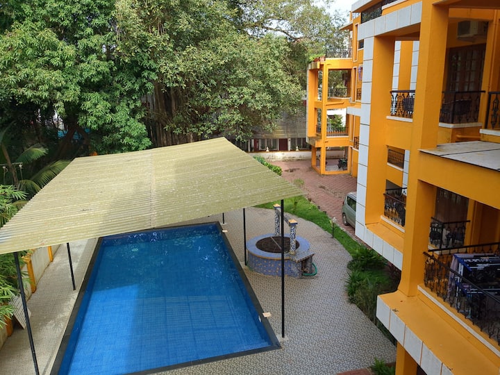 شقة بغرفتي نوم في شاطئ كاندوليم + حمام سباحة + موقف سيارات + واي فاي
