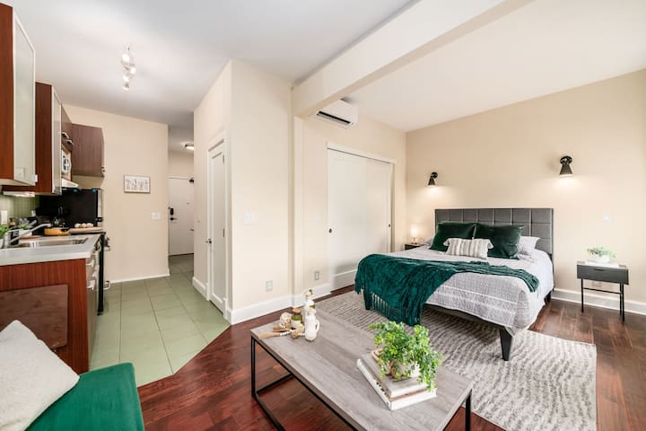 شقة في الطابق العلوي في وسط المدينة وموقف سيارات مجاني في المرآب