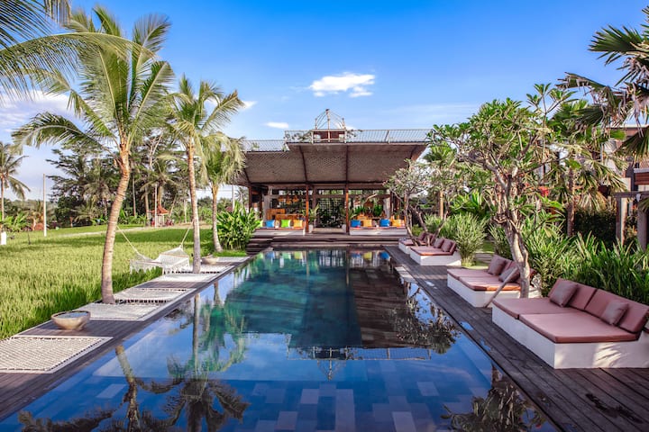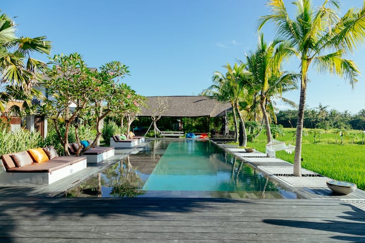 تقع وسط حقول الأرز الهادئة والخصبة، مع مناظر خلابة لجبل. أغونغ في أوبود، توفر فيلتنا الخاصة ملاذًا مثاليًا.