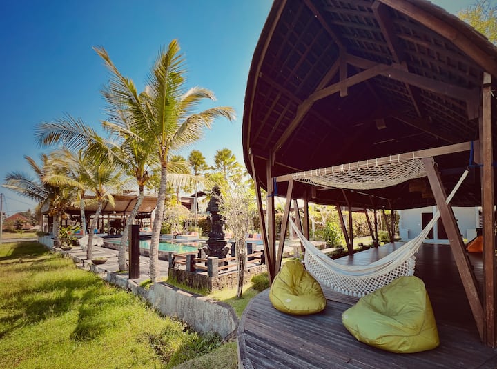 بالنسبة لأولئك الذين يتطلعون إلى الاسترخاء، يوفر حمام السباحة اللامتناهي إطلالات خلابة على جبل أغونغ وحقول الأرز المحيطة - وهو مثالي للسباحة الهادئة أو لحظة هادئة من التأمل. لدينا أيضًا شالا هادئة لليوغا والتأمل، وهي مساحة هادئة وملهمة مخصصة لليقظة أو التمدد أو التأمل الهادئ.