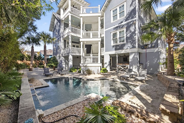 بيت IOP الشهير، حمام سباحة خاص، 3 دقائق إلى الشاطئ!