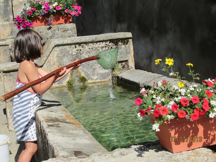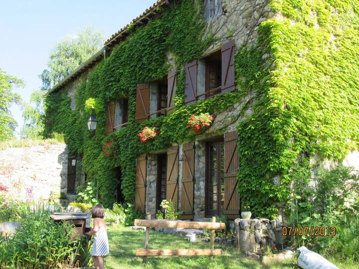 مزرعة قديمة تم تجديدها مقابل الجبل المشجر.