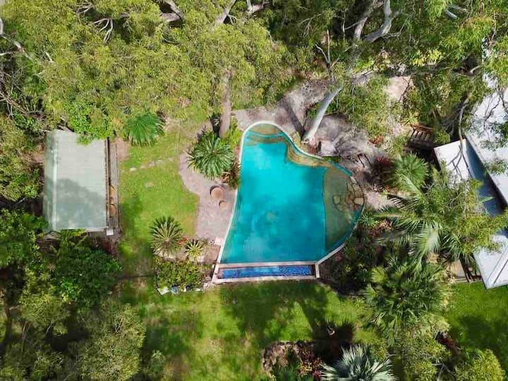 أستمتع أيضًا بالمناظر الطبيعية وأفتخر برعاية حديقتنا الاستوائية الكبيرة. لا تتردد في سؤالي عن تاريخ العقار عندما تكون هنا.