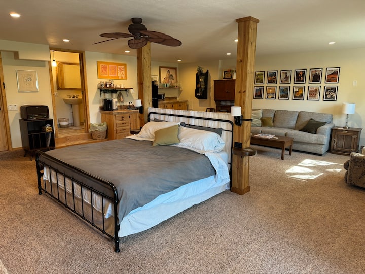 مرحبًا بك في جناح مانزانيتا! نحن نحب حقًا زاويتنا الصغيرة في بريسكوت ونحن متحمسون جدًا لمشاركتها معك. من خلال الحجز معنا، فإنك تساعد عائلة محلية من المستجيبين الأوائل (مات هو طيار طائرة هليكوبتر متخصص في حرائق البراري وكيلسي هي ممرضة مسجلة تعمل كمستشارة في حالات الحزن) في المهمة الهائلة المتمثلة في دفع تكاليف الكلية لثلاثة مراهقين. إن إنجاب جميع أطفالنا في غضون 17 شهرًا ليس بالأمر السهل! ولن نغير شيئًا.