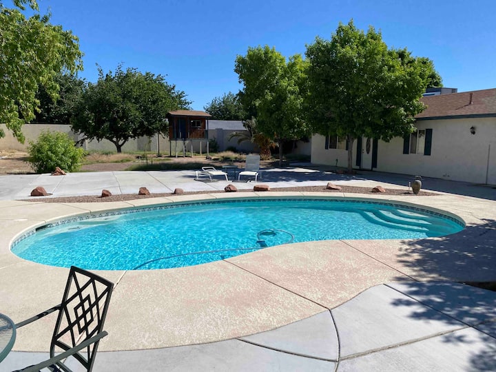 بيت ضيوف آمن وخاص مع حمام سباحة بالقرب من الشريط