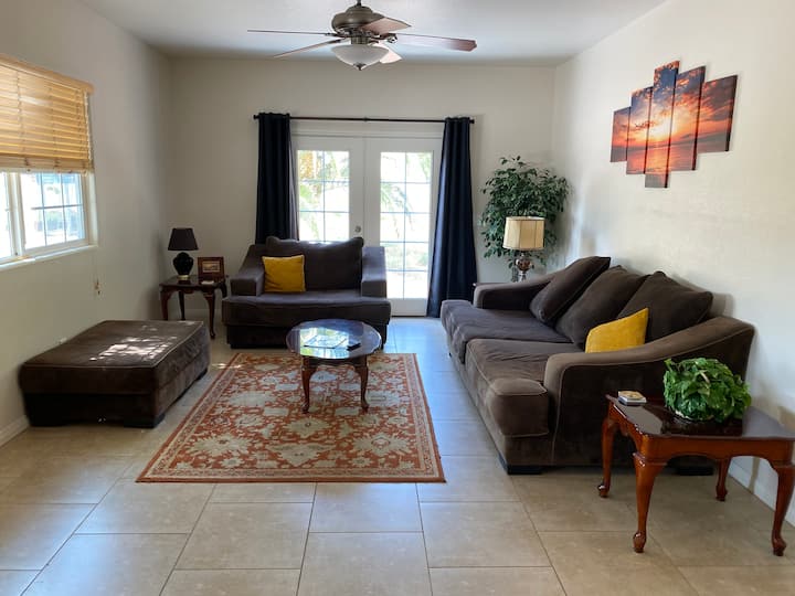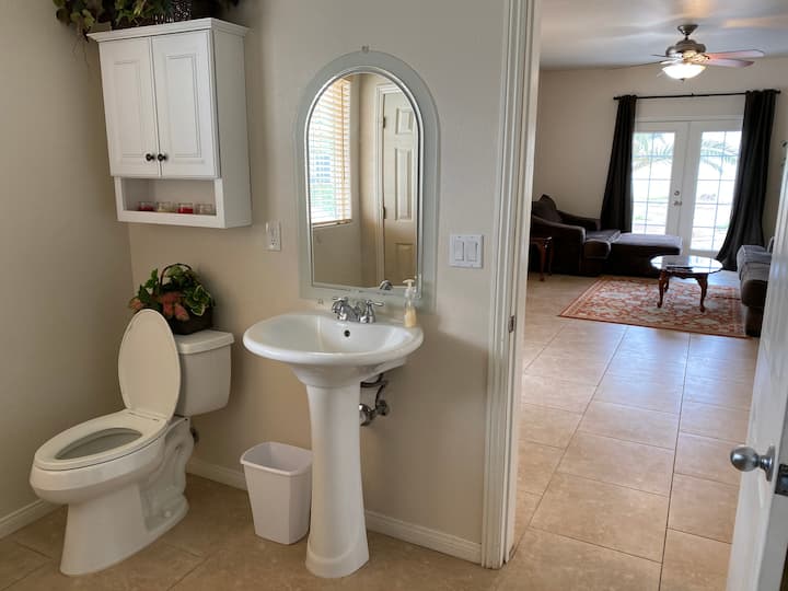 أنا أعيش في المنزل الرئيسي مع جروي ليو. لدي بيت ضيوف مستقل لأمي عندما تزور لاس فيغاس. لدي غرفة نوم إضافية مع مدخل خاص في المنزل الرئيسي للأصدقاء الذين يزورون لاس فيغاس. عندما لا يتم استخدام أي من الوحدتين، أعرضهما أحيانًا على Airbnb.