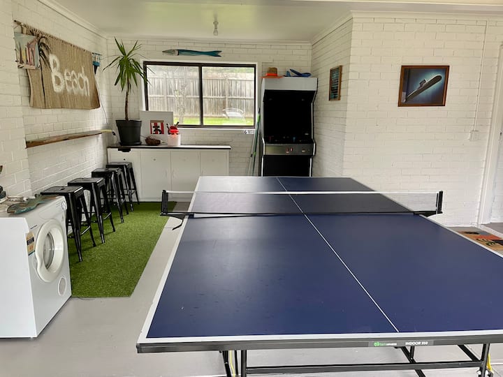 يمكنك الاسترخاء في غرفة المعيشة لدينا ، أو الاستمتاع بليلة ألعاب في مرآبنا ، أو لعب طاولة التنس. يمكنك أيضًا الاستمتاع بأمسية هادئة والاستمتاع بغروب الشمس من شرفتنا.