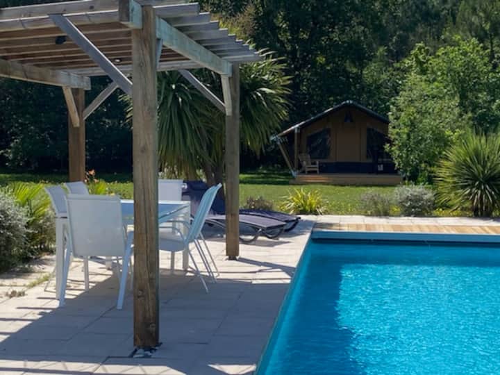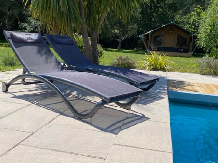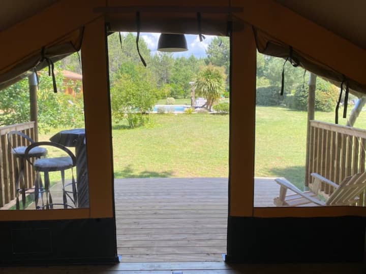 خيمة لودج مع شرفة قريبة من البحيرة والمحيط