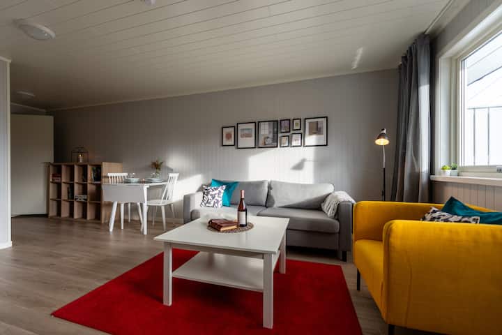 Lofotlove: شقة "Walrus" مريحة مع حوض استحمام ساخن خاص