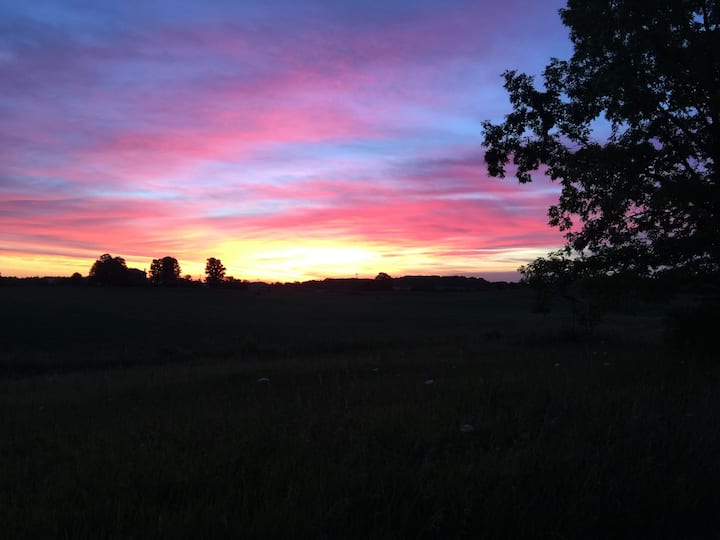 لقد عشنا هنا أكثر من 35 عامًا، مستمتعين بإيقاعات الحياة الريفية. يقع بيتنا بالقرب من تلة جليدية تفصل طريقنا الهادئ عن المزارع القريبة.