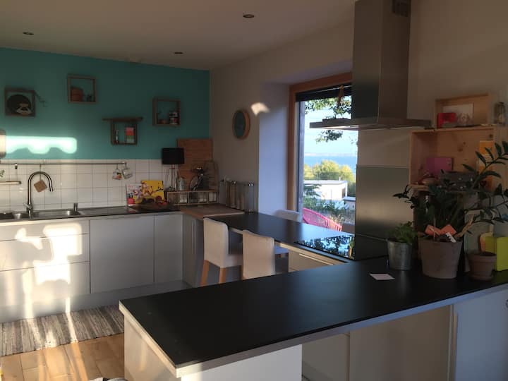 إطلالة على البيت على البحر، بالقرب من بريست والطبيعة.