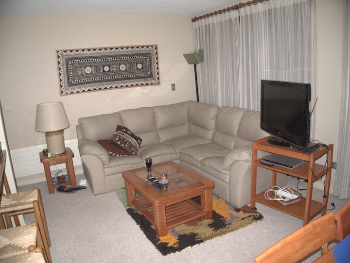 تقع بجوار المصاعد مباشرة ، مع مطاعم وخدمات تزلج متنوعة على بعد مربع سكني ، لا حاجة لسيارة! مشمس مع إطلالات رائعة ، وأنت فقط تتزلج من طابقين إلى الأسفل. استمتع بأجواء هادئة أثناء مشاهدة غروب الشمس الرائع. يمكننا المساعدة في التفاصيل لجعل إقامتك لا تنسى.