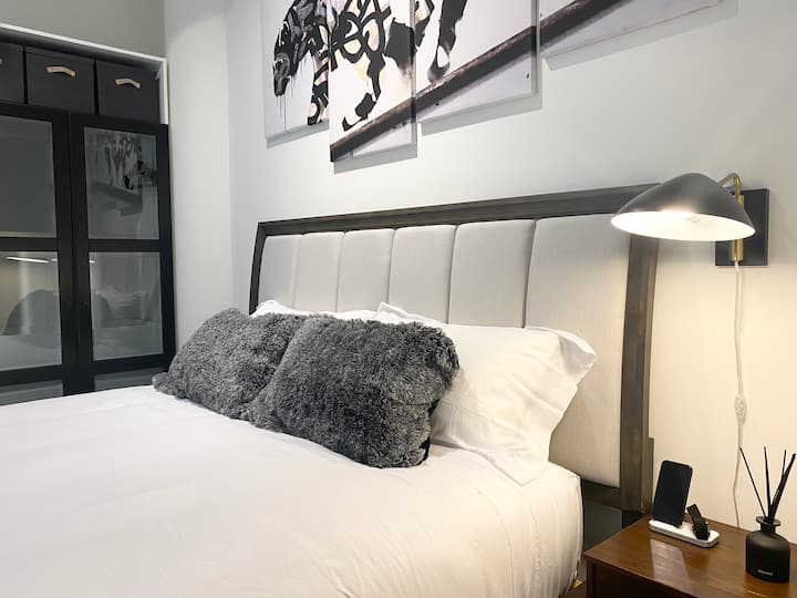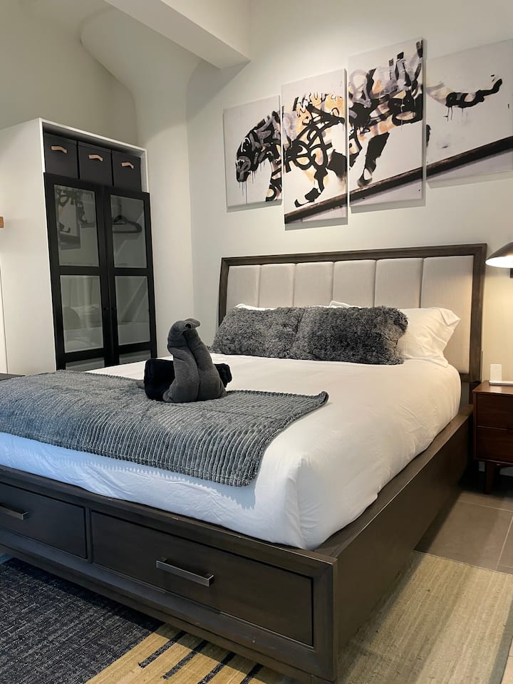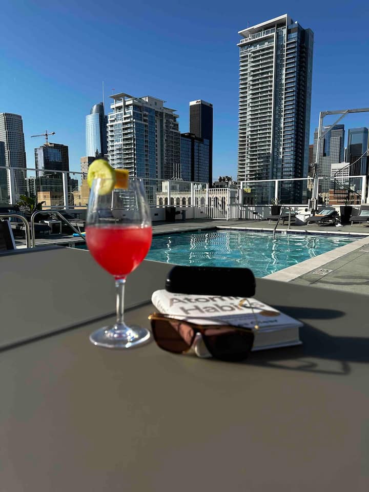 جناح فاخر بسرير كبير، إطلالة على أفق وسط مدينة لوس أنجلوس