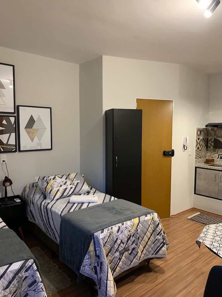 استوديو مريح على بعد 350 مترًا من جامعة ساو باولو. إنترنت ذكي، 650 ميجابايت.