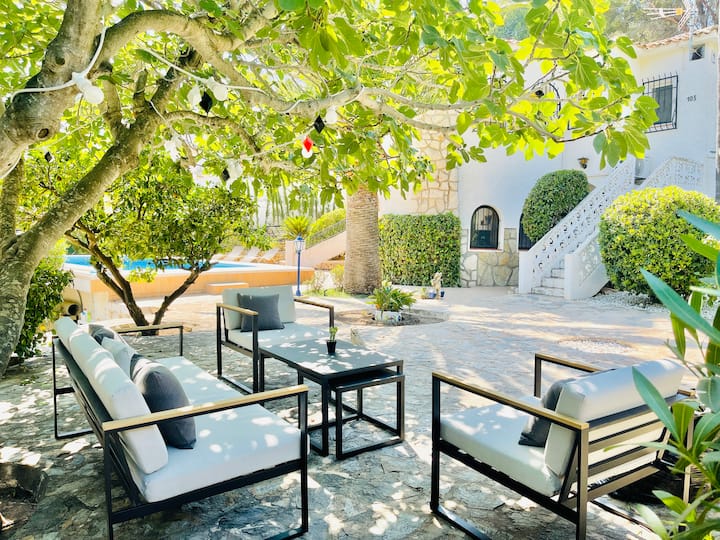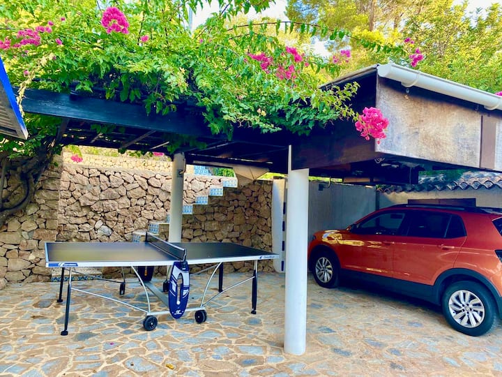 في الخارج يمكننا العثور على منطقة للاسترخاء للراحة في ظل شجرة جميلة. حديقة كبيرة للحيوانات الأليفة والأطفال الذين لديهم نباتات البحر الأبيض المتوسط الأصلية. تحتوي الفيلا على مساحة رائعة للأطفال للاستمتاع بالبيت. الفيلا مسيجة على الإطلاق، والحيوانات الأليفة مقبولة، ولكن مع دفع إضافي لكل منها. من المهم إخبار المضيف ما إذا كنت ستحضر حيوانات أليفة وعددها، لإرسال الدفعة الإضافية إليه. (في النهاية يمكنك رؤية الإضافات الاختيارية التي يمكن استئجارها مع إشعار مسبق للمالك).