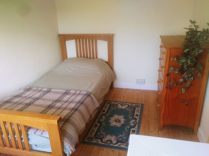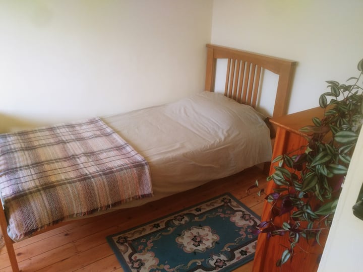 غرفة مفردة مشرقة في بيت ودود.