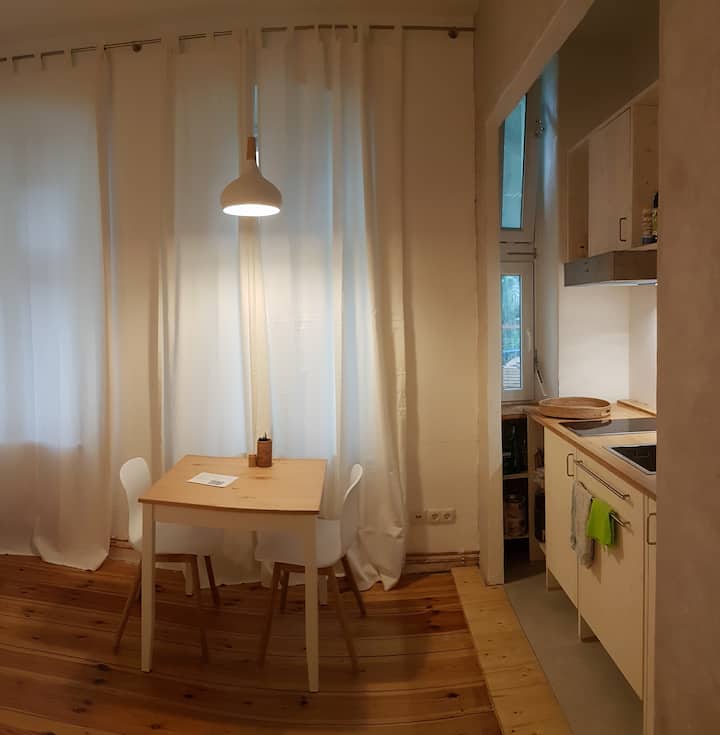 استوديو سكني في مبنى قديم في برلين مع حمام صحي