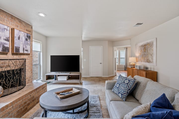 بيت من طابق واحد. يمكنك المشي إلى المتاجر والمطاعم