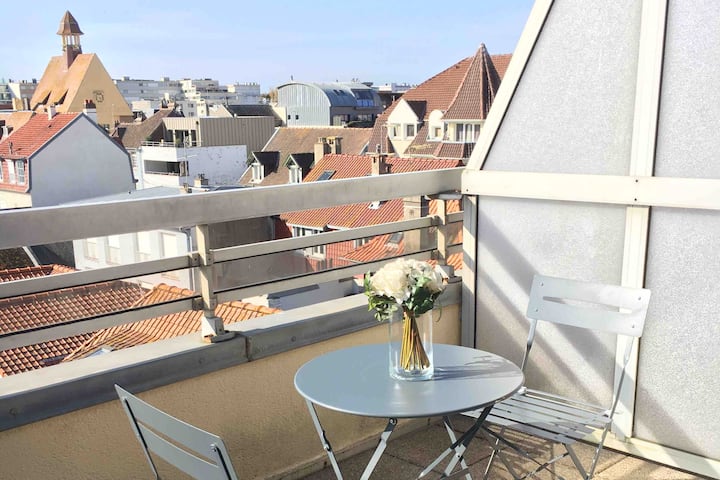 استوديو كبير مشرق مع شرفة جنوبية في الطابق العلوي