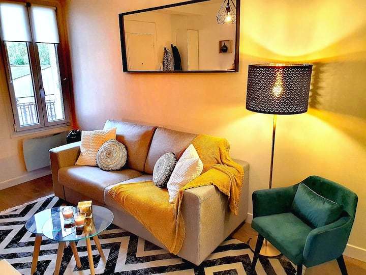 شقة رائعة من غرفتين بتصميم مريح على بعد 12 دقيقة من باريس