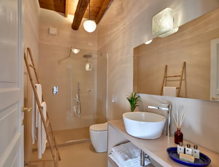 تتميز الفيلا، المفروشة باحترام للأصالة ومع ميل للقطع العتيقة والمصممة، بجوها الراقي وبيئاتها الأنيقة والمريحة، حيث يعبر الجمال عن نفسه على أنه فكاهة وثقافة وخيال.
