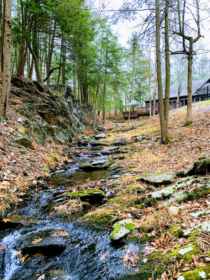 بيت ماونتن بروك المكون من 4 غرف نوم على مساحة 130 فدانًا مع مسارات
