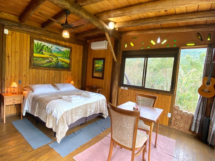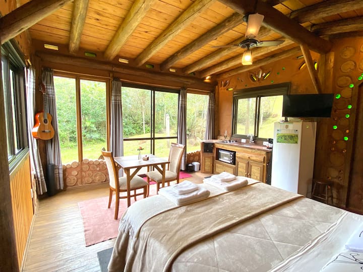 أنا من ريو غراندي دو سول والآن أعيش في هذه القطعة الصغيرة من الجنة. سنكون هنا، رافاييل وأنا، للترحيب بك في موقعنا الزراعي البيئي ومشاركة الجمال الطبيعي لهذا المكان والإبداعات المشتركة مع المسكن. نحن نؤمن بالممارسات المستدامة والعيش في وئام مع الطبيعة والناس.