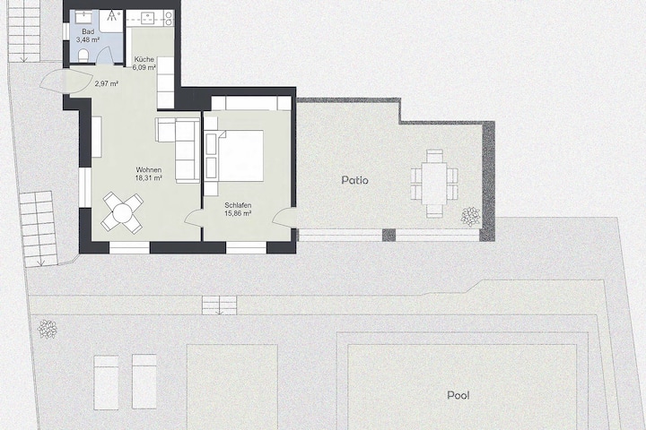 يعد هذا المكان أحد المساكن القليلة في المنطقة التي يتوفر فيها مسبح.