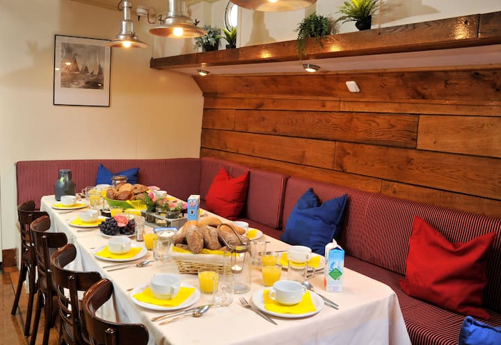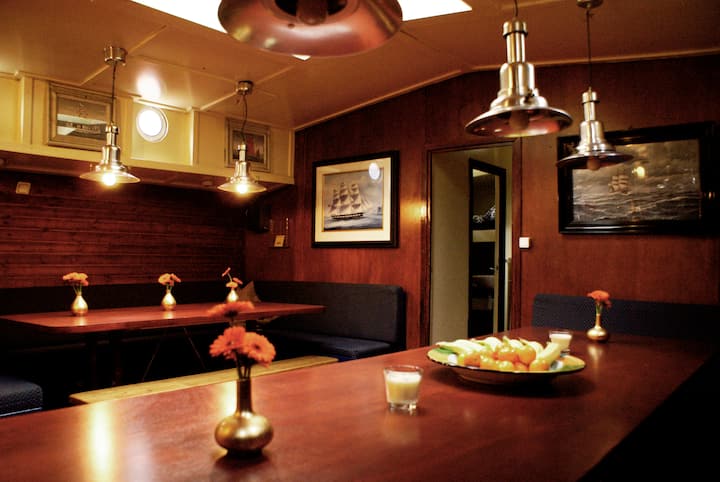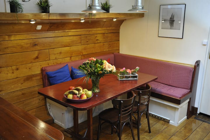 مرحبًا، اسمي راي. أعيش في Weesp، وهي قرية صغيرة قريبة من أمستردام. قاربي على نهر "فيخت"، لذلك سيكون لديك إطلالة جميلة على الماء. في فصل الصيف نبحر مع هذا المركب عبر المياه الهولندية مع المجموعات التي تستأجر القارب.