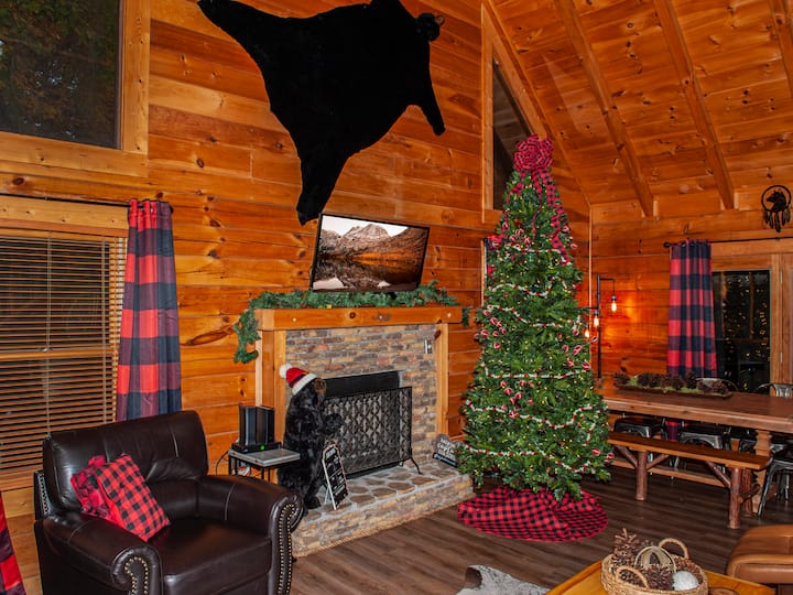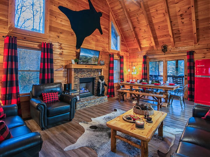 كوخنا الأول، Bearfoot Dreams، هو مكان رائع لأولئك الذين يعانون من محدودية الحركة. لا توجد خطوات من موقف السيارات إلى الطابق الرئيسي للمقصورة. يوفر هذا الطابق غرفتي نوم كوين ودش زجاجي، بالإضافة إلى المطبخ ومنطقة المعيشة. الموقع رائع، حيث يقع على بعد 1.5 ميل فقط من الجزيرة في بيجون فورج.