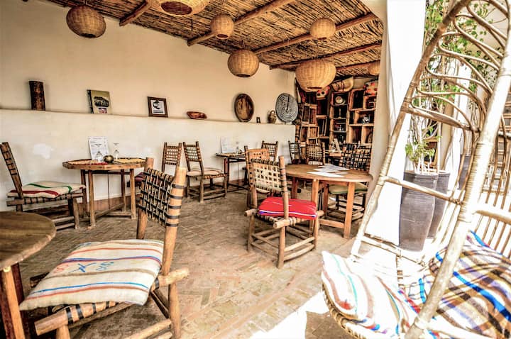 إنه بيت تقليدي كبير مع فناء مركزي. يوجد حمام سباحة (7 م × 3 م) على السطح مع حمام شمسي، بالقرب من منطقة السبا ومطعم وبار غرفة المعيشة.