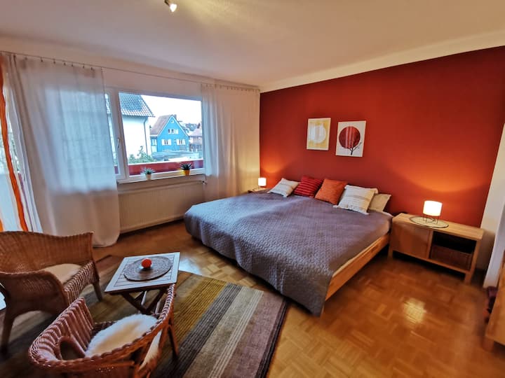 غرفة خاصة مع شرفة في لينداو، هادئة ومركزية